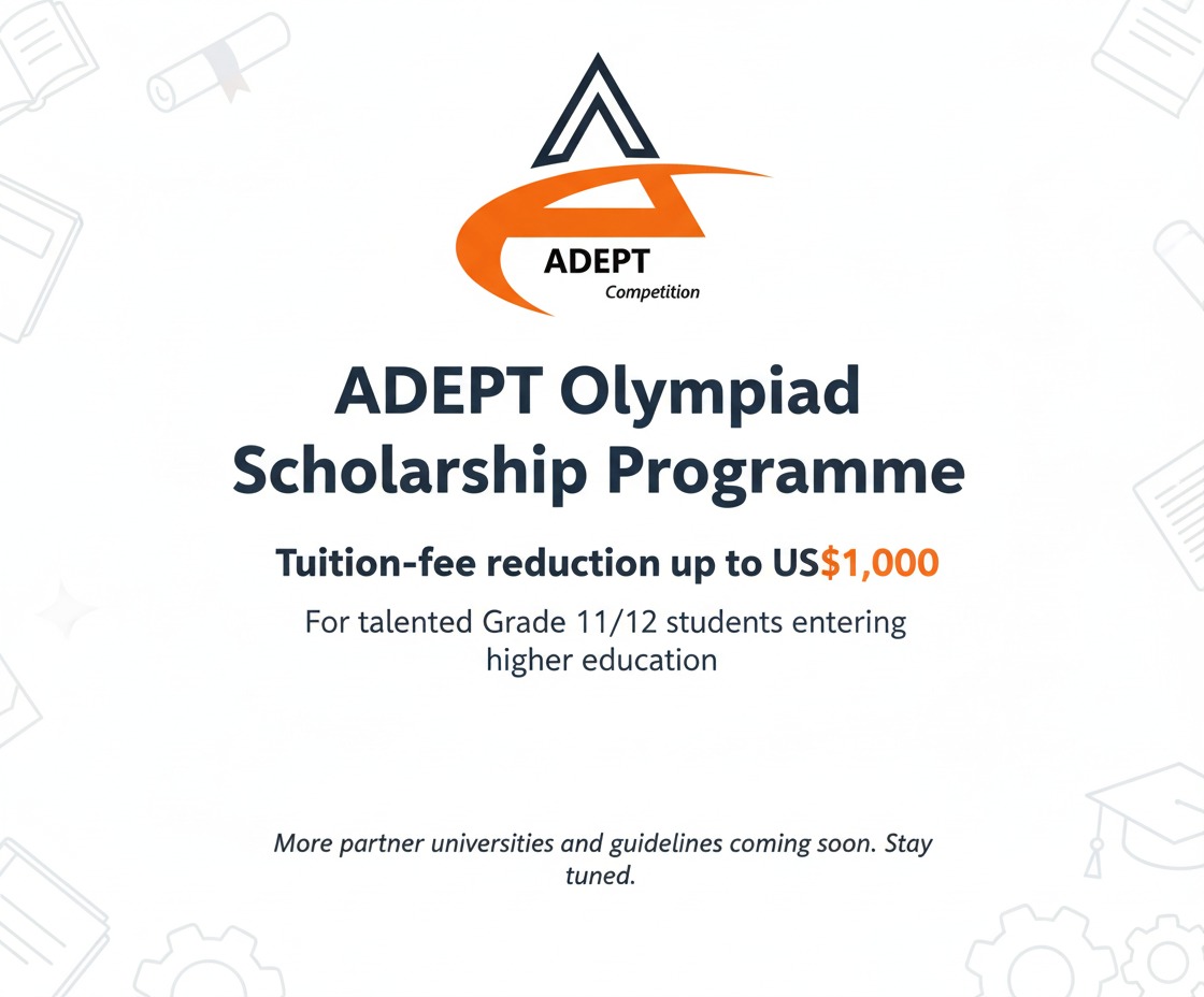 The ADEPT Olympiad Committee is proud to announce the launch of the ADEPT Olympiad Scholarship, a prestigious initiative designed to recognise and reward outstanding academic achievement among our global participants.